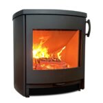 Brændeovnen fremstår elegant og stilren som en integreret del